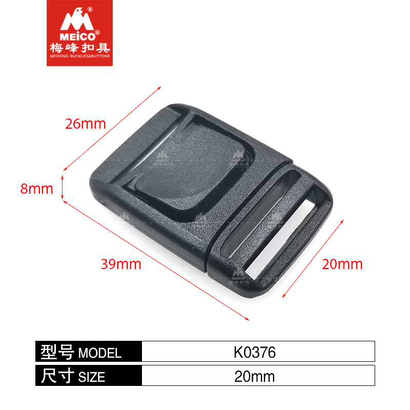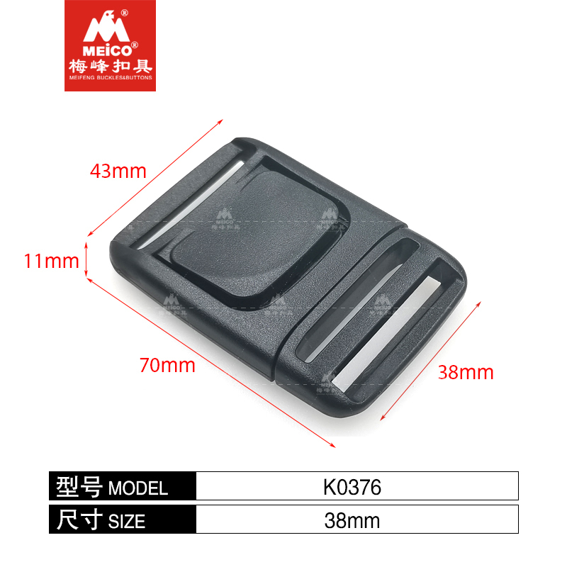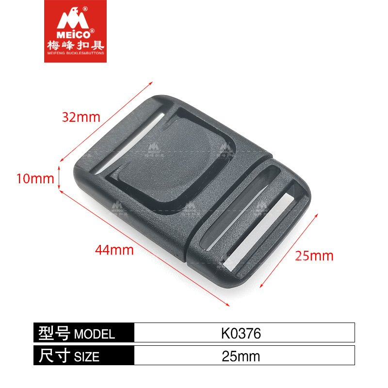 Disponível em 20 mm, 25 mm e 38 mm, funciona com fita ou alça de mochila, ajustável em um lado e impressionantemente forte, o formato especial furtivo oferece uma área de liberação robusta para os dedos, o que permite uma liberação conveniente mesmo usando luvas ou mitenes.