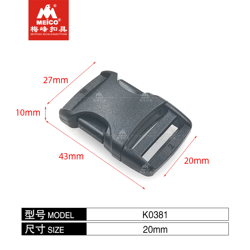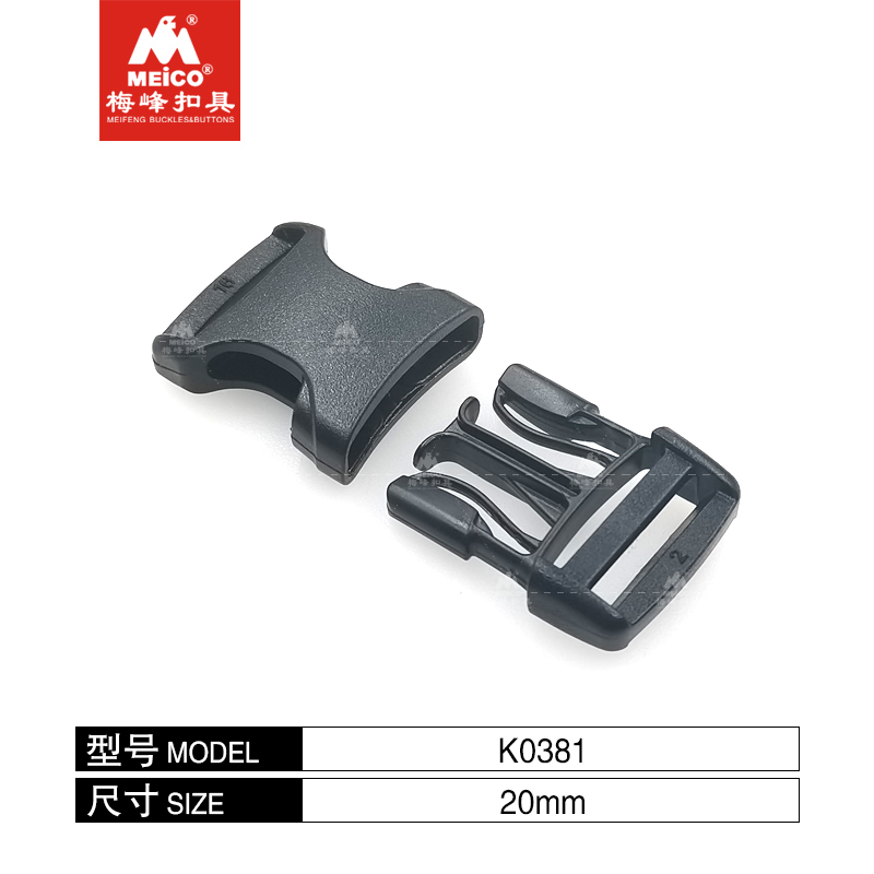 Material: POM ou personalizado. O POM é amplamente utilizado para fivelas de liberação lateral rápida