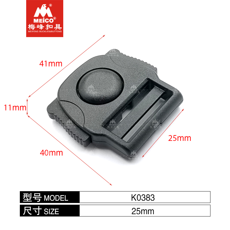 Disponível em 20 mm, 25 mm e 38 mm, funciona com fita ou alça de mochila, ajustável em um lado e impressionantemente forte, o formato especial furtivo oferece uma área de liberação robusta para os dedos, o que permite uma liberação conveniente mesmo usando luvas ou mitenes.